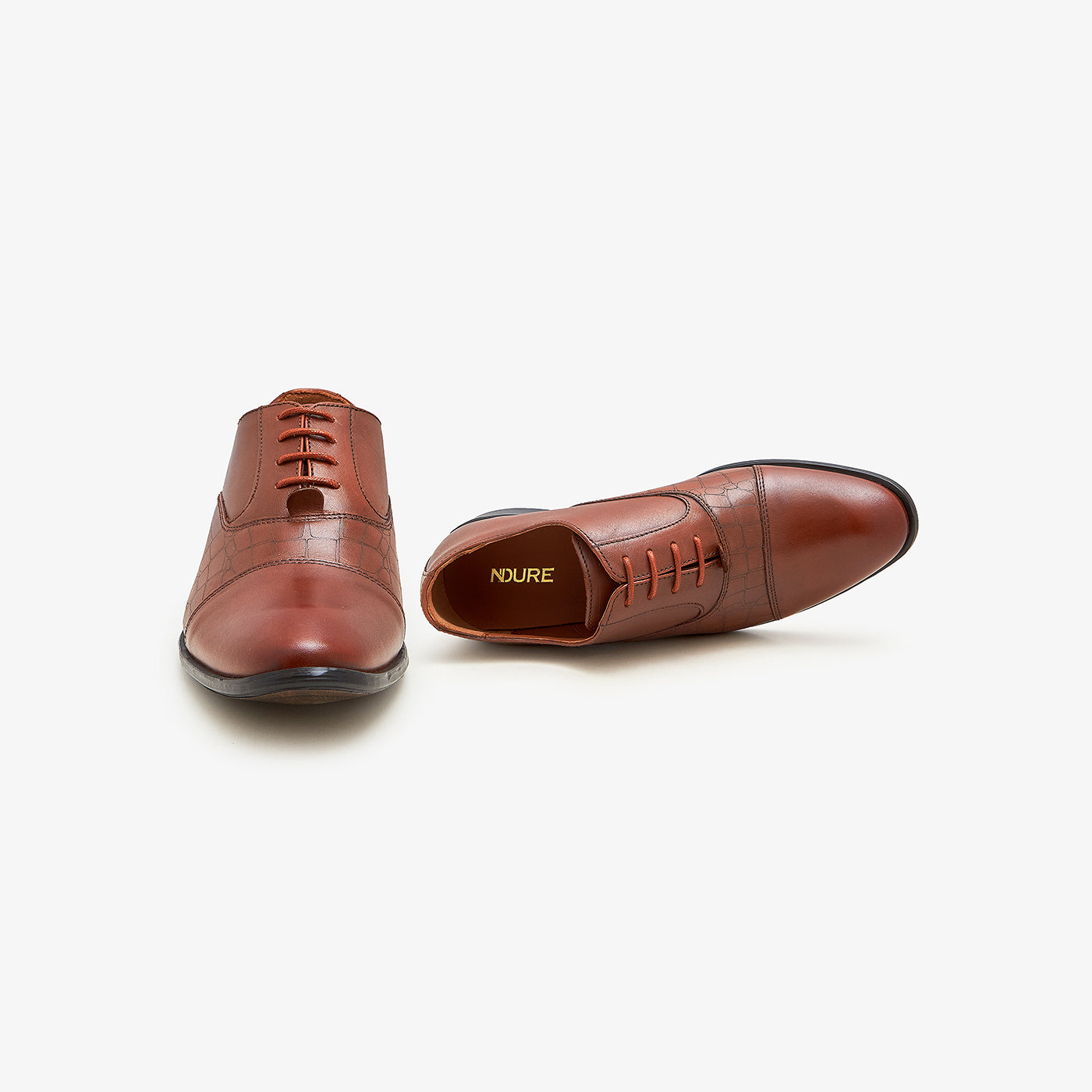 These shoes feature a round toe shape and a lace-up closure.